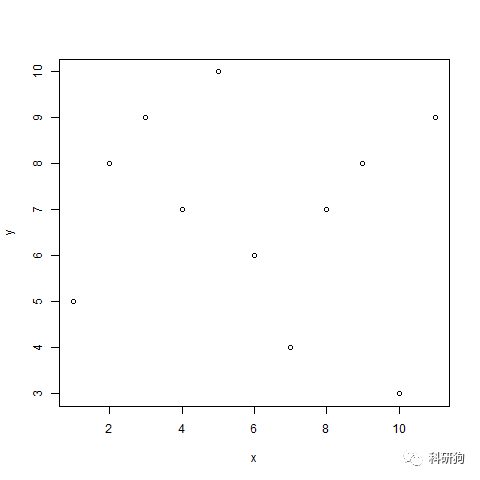 散点图需要有X值和Y值,上面采用的函数依然是plot()函数,运行之后得到如下图片。当然你可以更改散点的类型,可以有三角形、正方形等20多种类型可选,甚至可以自定义散点类型