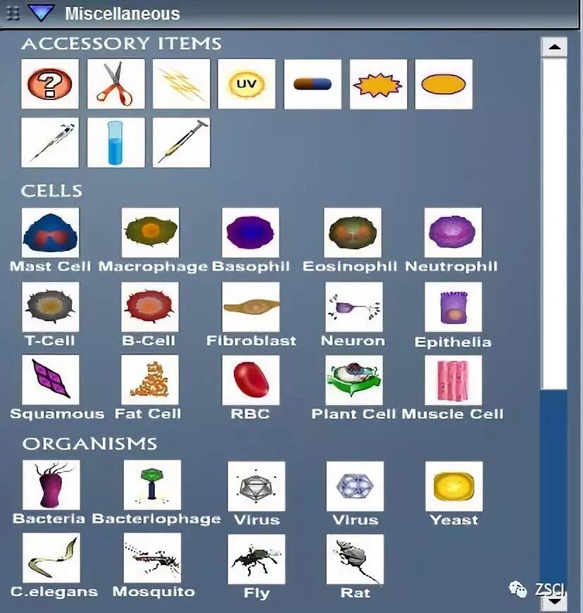 2.下拉Organelles(细胞器)对话框,会出现各种细胞器结构。