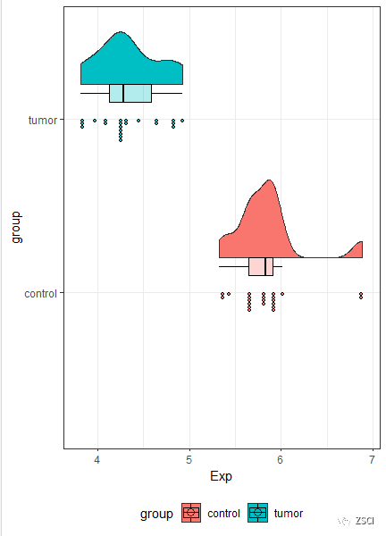 云雨图顾名思义,因为画出的图形酷似云雨,它是密度分布图、箱线图、散点图的集合,完美的展示了所有数据信息。